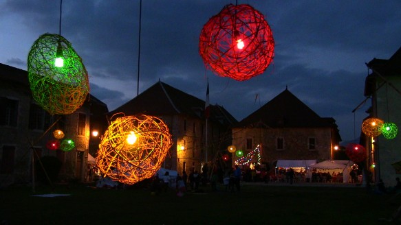 Du 26 au 28 juin 2015 18 boules lumineuses suspendues dans les arbres du parc du Verney à Chambéry.